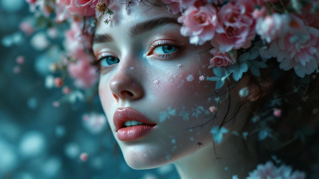 | Still Life | Cultural figures and botanical subjects elevated to iconic, deity-like status through monumental scale and ethereal presentation |